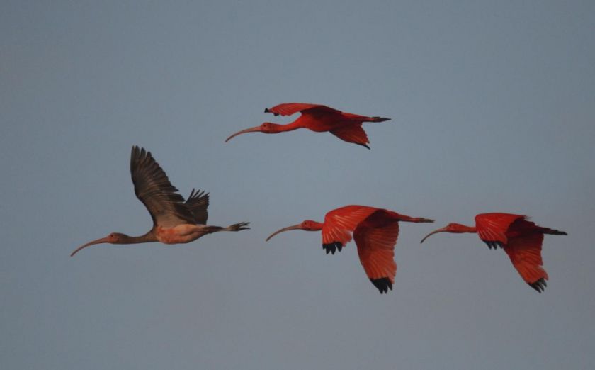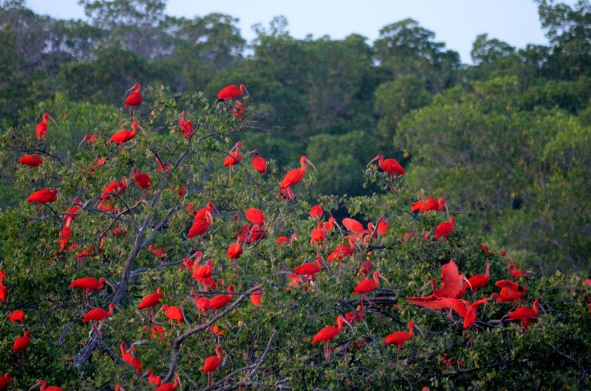 A Revoada dos Guarás é um fenômeno encantador! Pode ser contemplada ao amanhecer ou entardecer, quando os guarás estão saindo ou voltando para seu dormitório nas árvores.