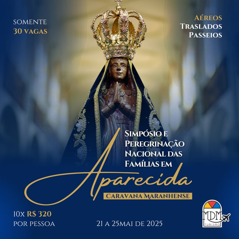 25mai – Dia livre para participação na Peregrinação Nacional das Famílias no Santuário Nacional de Aparecida. O embarque de retorno para o aeroporto internacional de Guarulhos, será 16h. O voo GOL G31508G tem saída prevista para 23:00 e chegada prevista em São Luís às 02:30 do dia 26mai.